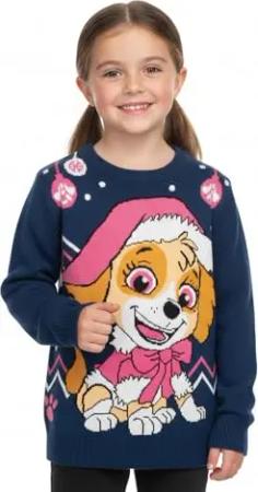 Paw Patrol Skye Weihnachtspullover, Blau/Pink, 110-116, Winter Strickpullover für Mädchen, Ugly Christmas Sweater