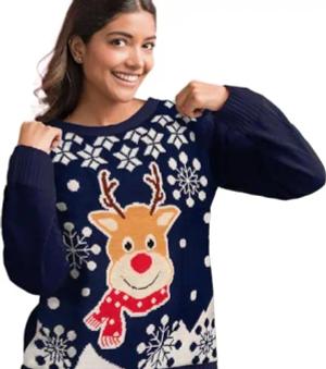 Weihnachtspullover Rentiere, Ugly Sweater für Damen, Rentierdesign in Blau und Weiß, Sweatshirt in XXL, 100% Polyacryl