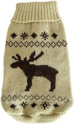 | Strickpullover Elch in Beige/Braun | Rückenlänge 35 cm