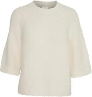 Strickpullover KAlizza Damen Strickpullover Kurzarm Streifen Lässig Casual Rundhals Pullover Gestreift Chalk/GreyMel. Bold Stripe XS