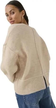 Strickpullover KAellery Damen Strickpullover Rundhals Pullover Winter Sweater Grobstrick Sweatshirt Elegant Oberteile Pulli Feather Grey/Chalk Structure XS