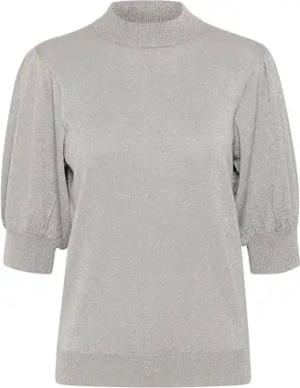 Strickpullover KAregina Damen Strickpullover Glitzer Pullover Kurzarm Rollkragenpullover Pulli Grey Silver metallic XS