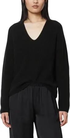 Damen Strickpullover aus Bio-Baumwolle mit V-Ausschnitt, Schwarz (Black), XS