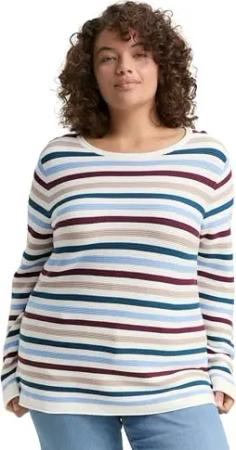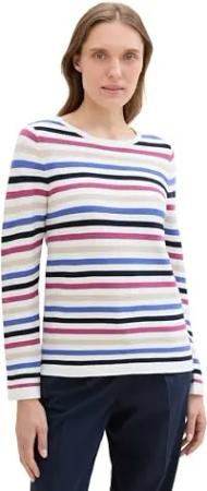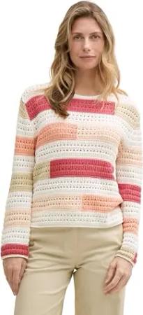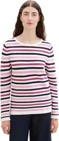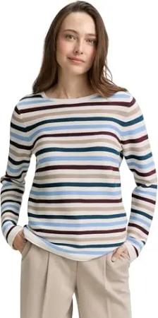 Damen Basic Strickpullover aus Bio-Baumwolle, 36208 - Colorful Knit Stripe Design, M