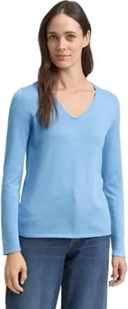 Damen Basic Strickpullover mit V-Ausschnitt, 15584 - Sea Blue Melange, S