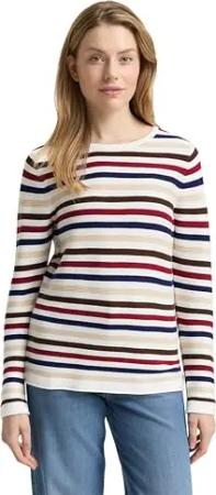 Damen Basic Strickpullover aus Bio-Baumwolle, 36208 - Colorful Knit Stripe Design, S