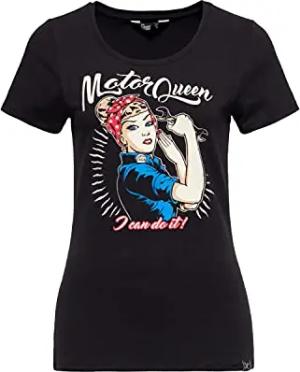 Damen Basic T-Shirt Slim Fit Retro Frontprint Motor Queen I Can Do It