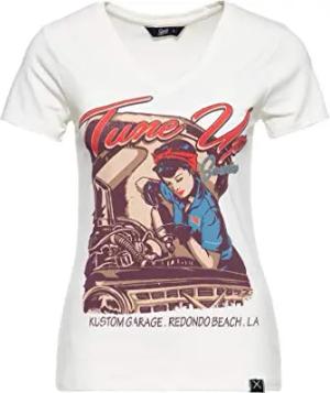 Damen T-Shirt Rockabilly Rockabella 50S Slim Fit Front-Print Retro Vintage Hot Rod Rock'n'roll Work Wear 1950 Custom Garage Built It Up!