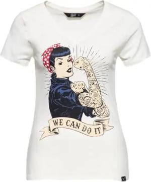 Damen Kurzarm T-Shirt Vintage Print We Can Do It V Ausschnitt Slim Fit Retro Empowerment 50s Rockabilly Rockabella 1950s We Can Do It