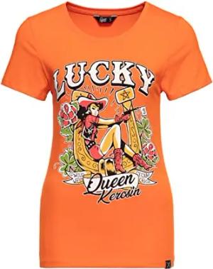 Damen Print T-Shirt Kurzarmshirt Vintage Shirt Slim Fit Frontprint Retro Pin-Up Texas Wild West Lucky 50S Lucky