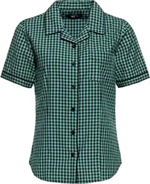 Damen Retro Hemdbluse Rockabilly Karobluse Kariert Kurzarm