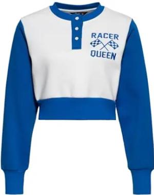Damen Sweater · Cropped Pullover · Sweatshirt · Henley · Racing · Vintage · Retro · 50s · Kurz · Angeraut · Knöpfe · Breite Bündchen · Bauchfrei · Racer Queen
