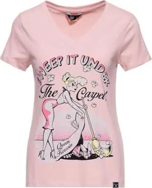 Damen T-Shirt · Printshirt · Vintage · Logodruck · 50s · Retro · Rockabella · Rockabilly · Slim Fit · Elastisch · V-Ausschnitt · Kurzarm · Sweep It Under The Carpet