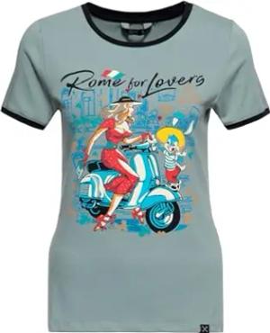 Damen T-Shirt Rundhals Kurzarm Slim Fit Kontrastfarben Figurbetont Italien Rom Rome Vintage Retro Ringer Contrast Print Artwork Rome for Lovers