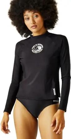 Langärmeliges Damen-T-Shirt für Outdoor, Surfen, Schwimmen, Rash-Weste, Schwarz , 30