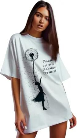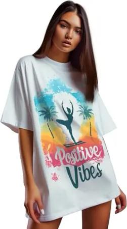 Damen Oversized Print T-Shirt 24RSW057 Positive Dreamer L