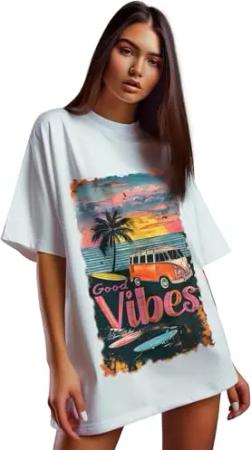Damen Oversized Print T-Shirt 24RSW057 Surfside Vibes S