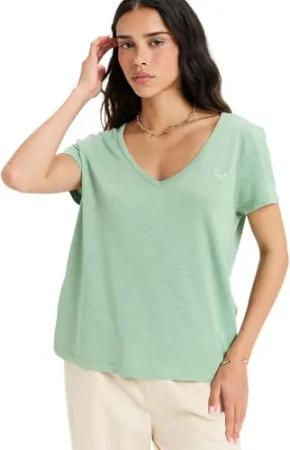 Damen is Flowing Top V T-Shirt, Basil, XXL