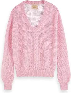Maison Scotch Damen Pullover Fuzzy V-Neck 156255 Sorbet Pink L