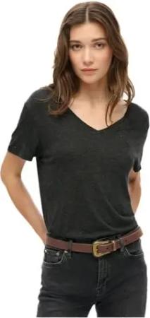 Superdry Damen Essential Kurzarm-t-shirt mit Eckigem Ausschnitt Dunkelgrau - Größe: 36