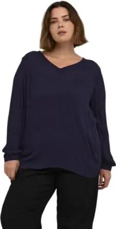Damen Plus-Size Women's Blouse Long Sleeves V-Neck Regular Fit Rounded Hem Bluse, Dawn Purple, 50/Grande Taille