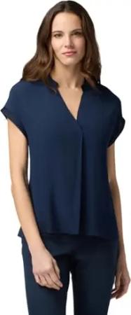 BLU024 Elegante Damen Halbarm Sommer Shirtbluse aus Leinen mit V-Ausschnitt, Farbe:dunkelblau, Größe:34