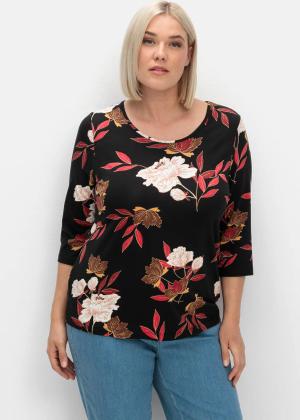 Große Größen: 3/4-Arm-Shirt mit Blumenprint, aus Viskosejersey, rot gemustert, Gr.40-54