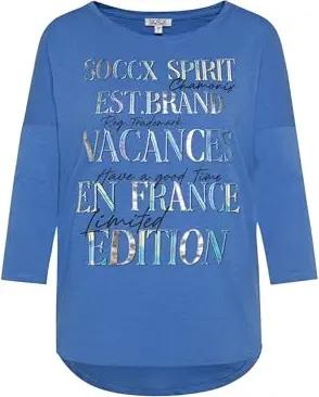Damen Shirt mit 3/4-Ärmeln und Buntem Wording Print Vividblue S