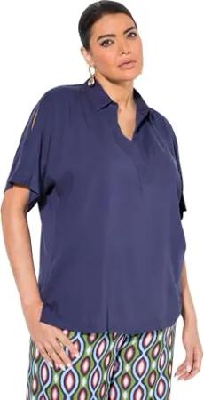 Damen große Größen Übergrößen Plus Size Bluse, Schulterschlitz, Oversized, Hemdkragen, Halbarm Universum 46+ 839018730-46+