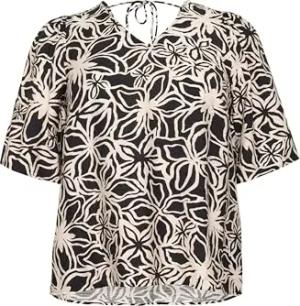Damen Plus Size Women's Blouse V-Neck Half Sleeves Flared Fit Printed Bluse, Schwarz/Hellbeige Blumenmuster, 50/Grande Taille