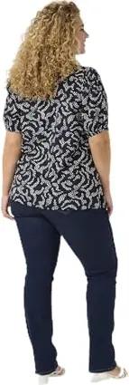 Damen Plus Size Women's Short Sleeves Buttons Regular Fit Printed Shirt, Midnight Marine Lace Print, 50/Grande Taille