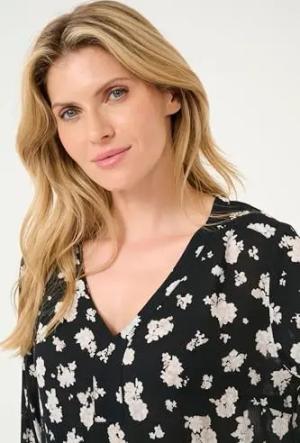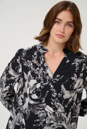 Langarm-Bluse KAamber 44, Black/Turtledove Flower Print 44
