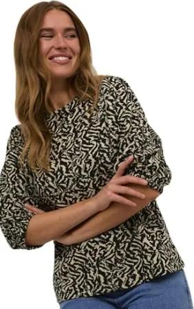 Langarm-Bluse KAbeathe 34, Black/Sand Leo Print