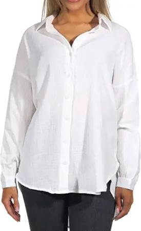 Damen Lange Oversized Hemd Bluse | Langarm Classic Tunika | Oberteil mit Schlitzen ONLTHYRA, Farben:Weiß, Größe:XS