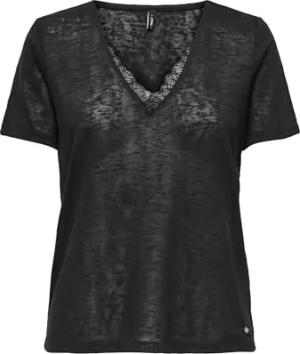 Damen Onlzola Life S/S V-Neck Lace Top JRS, Black, Small