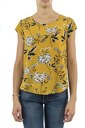 NOS Damen onlVIC SS Aop TOP NOOS WVN Bluse,, per pack Mehrfarbig (Chai Tea Aop: Yellow Flower), Small (Herstellergröße: 36)