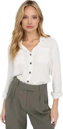 Damen Onltokyo L/S Linen Blend Shirt PNT Noos Langarmhemd Mit Normaler Passform Und Knopfverschluss 15259585,Weiß,L