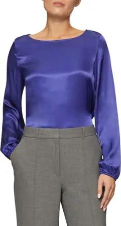 Satiniertes Blusenshirt im Fabricmix mit Raff-Details
