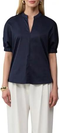 Popeline-Bluse mit überschnittener Schulter und Tunika-Ausschnitt