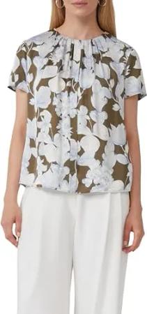 Satinbluse im Slim Fit mit Raffung und All-Over-Print