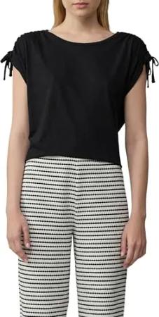 Curve Damen T-Shirt (DE/NL/SE/PL, Numerisch, 46, Regular, Regular, Beige/Schwarz)
