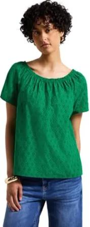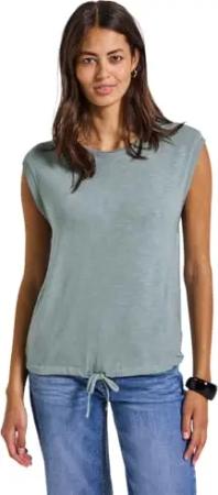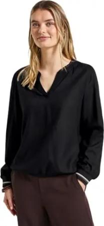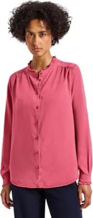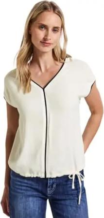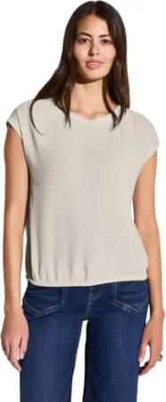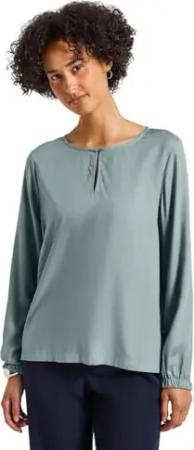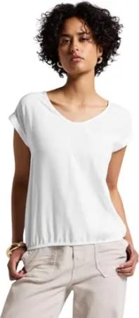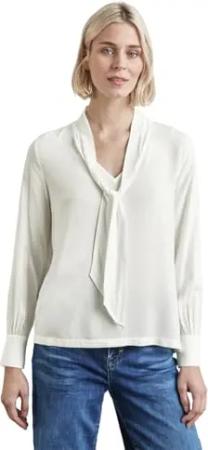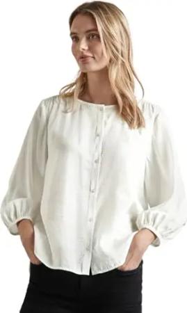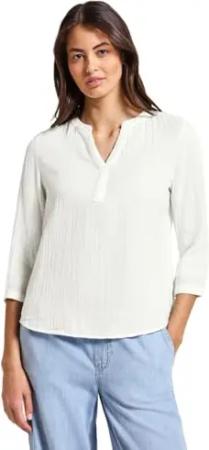 Damen A345200 Buttoned Roundneck Blouse W Gathering Uni, Off White, 38 EU, Off White, 38