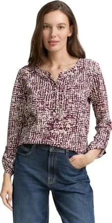 Damen 1049420 Plussize Plus Size-Henley Blusenshirt mit Muster, 38733-Berry Bordeaux Vichy Print, 48