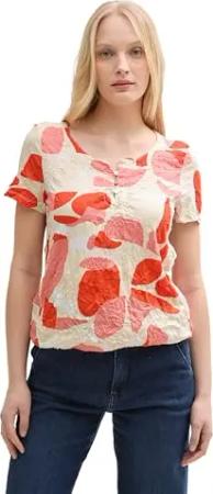 Damen 1047156 T-Shirt, 38010-Red Cut Leaves Design, 50