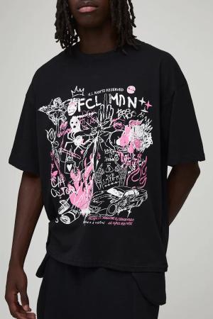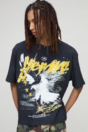 Black Oversized Boxy Washed Homme Eagle Graphic T-Shirt
