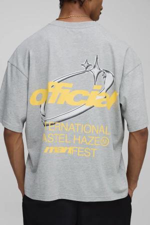 Kastiges Oversize T-Shirt mit Official Print - Grau - S, Grau