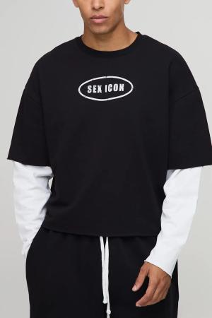 Kastiges Oversize T-Shirt mit Sex Icon-Print - Schwarz - L, Schwarz