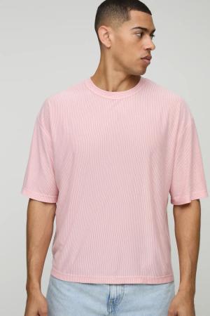 Kastiges Oversize T-Shirt mit Streifen - Rosa - L, Rosa