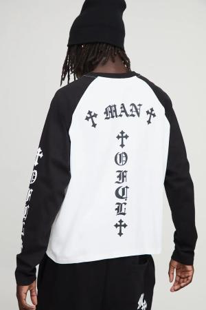 Langärmliges Raglan T-Shirt mit Gothic-Print