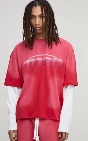 Kastiges zerrissenes Oversize T-Shirt mit Print - Rosa - L, Rosa
